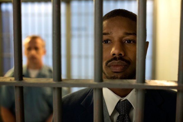 This image released by Warner Bros Pictures shows Michael B. Jordan in a scene from “Just Mercy.” (Jake Netter/Warner Bros. Pictures via AP)The Peanut Butter Falcon
